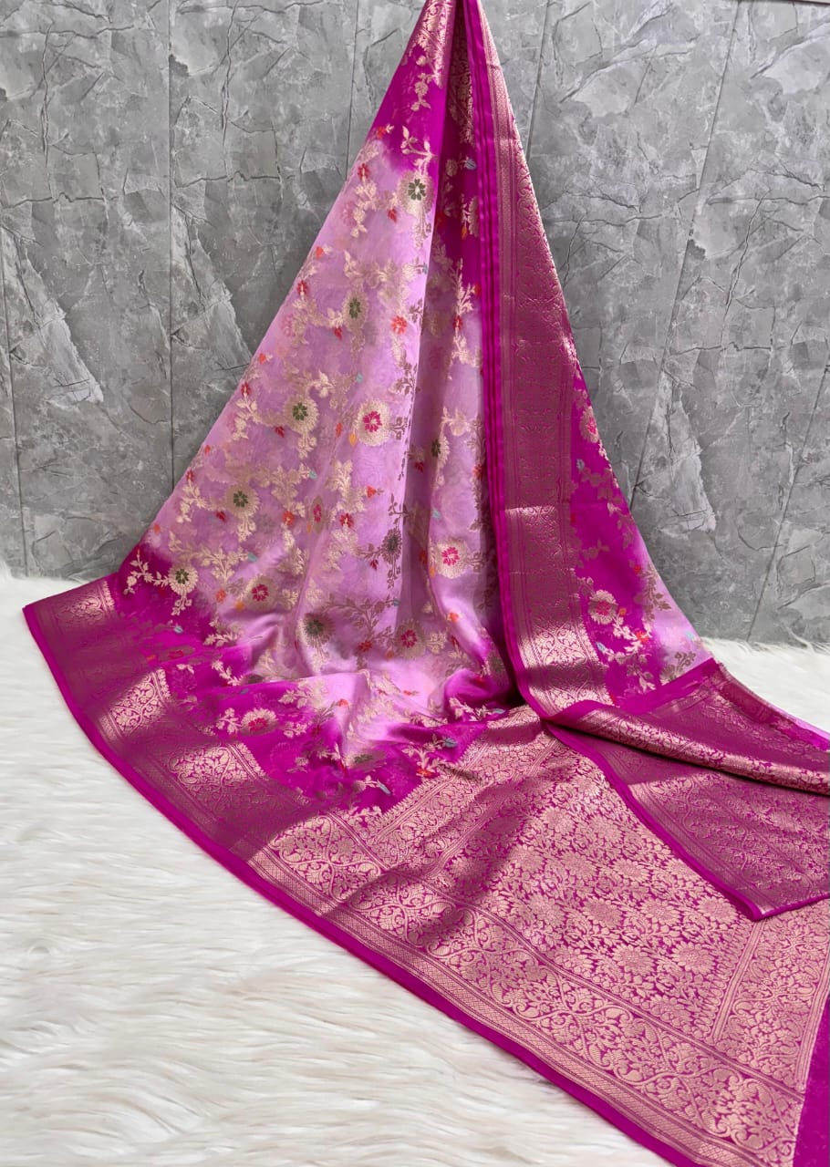 SAREEN Dual Tone Pink Georgette Chiffon Silk Saree with Zari Border